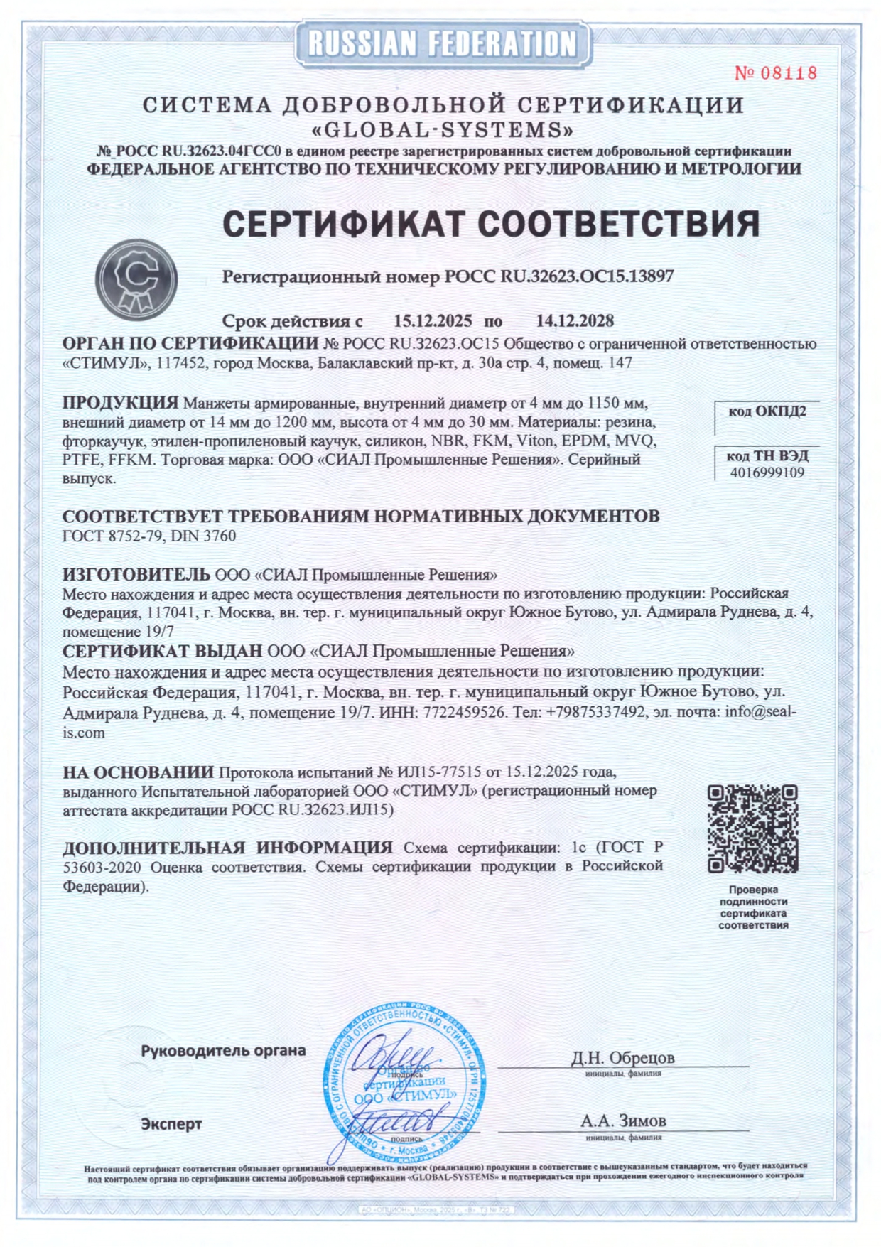 Сертификат Манжеты армированные